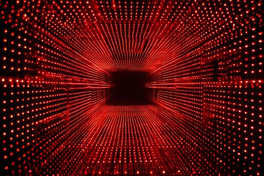 Futuristic Digital Pattern With Neon Elements On Abstract Red Background Images