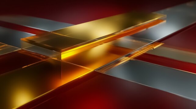 Red background with gold and silver strips. The strips are overlapping and creating a pattern. The image has a modern