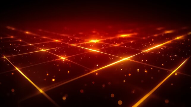Red background with a grid of yellow lines and dots. The image has a futuristic and abstract feel to it