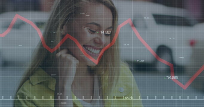 Futuristic AI interface and data analytics concept with glowing charts and graphs over modern city skyline at night with digital blue tones.