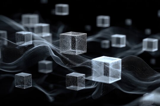 Minimal data flow map with subtle binary trails, fading in and out of a soft dark background
