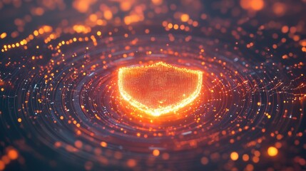 Futuristic digital security with shield padlock icon