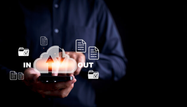 Cloud Share diagram computing and Communication concept, Hand touching infographic cloud computing and technology icons, Confidential information such as internet banking, password, shopping
