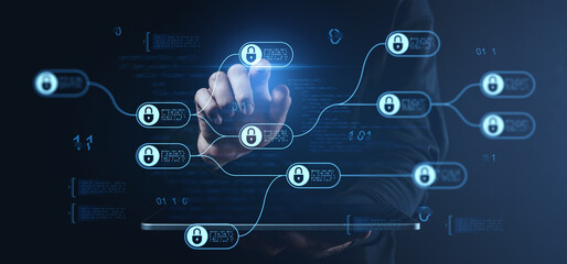 Cyber security concept, Lock icon and internet network security technology. screen padlock and encryption, develop software of data protection reduce the vulnerability in their network, technology