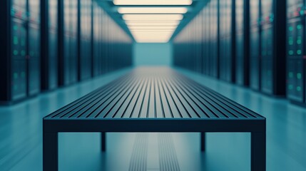 Futuristic black table in server room highlighting premium tech products