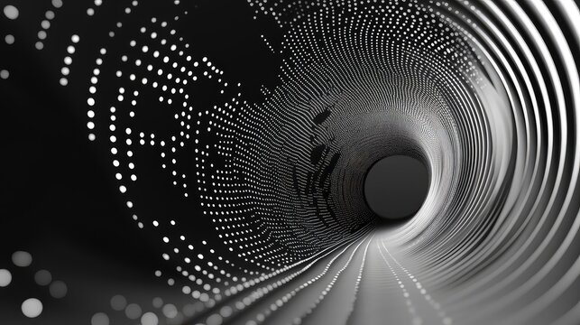 Futuristic digital tunnel of glowing particles and binary streams conveying network connectivity, big data flow, ai powered communication and cyber technology in motion