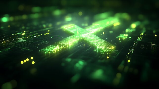 Abstract digital circuit board background; glowing blue and gold lines; technological innovation concept; futuristic data network.