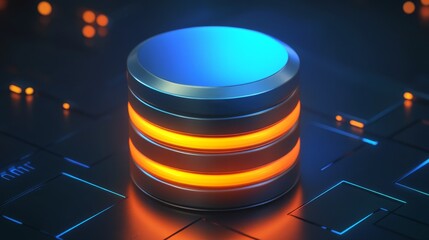 Vibrant Pulsating 3D Server Icon with Orange Highlights
