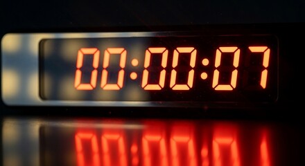 Closeup of countdown timer on digital display, showcasing vibrant red and blue lights. timer is set to zero, creating sense of anticipation.