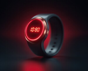 Futuristic black and red smart wristwatch with glowing LED display showcasing modern timekeeping wearable technology