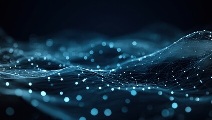 Glowing blue binary wave flowing through dark space for data visualization and ai concepts