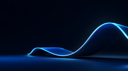 A glowing blue neon line forming a smooth wave shape on a dark, reflective surface, suggesting fluidity and elegance