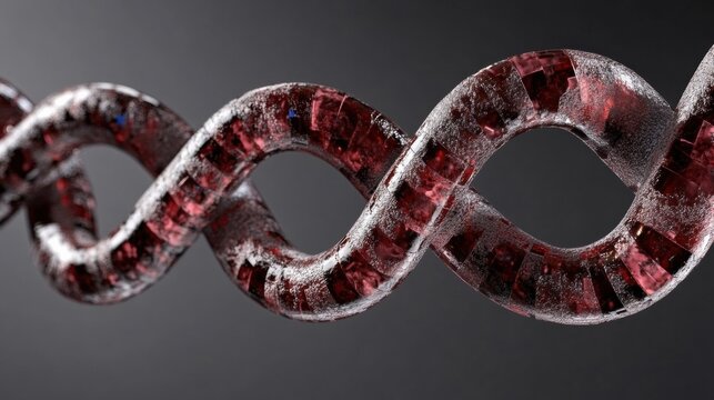 DNA Double Helix: An artistic representation of a DNA double helix model, illustrating the complexities of genetics and the building blocks of life.
