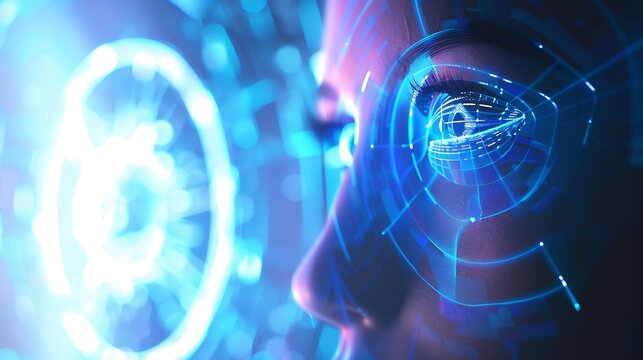 human being futuristic vision, vision and control and protection of persons, control and security in the accesses.Concept of: dna system, scientific technology and science.