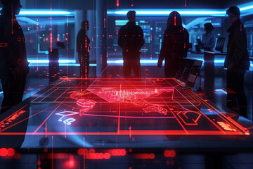 Futuristic Cybersecurity Interface Digital Network Graph with Floating Shield Icons - IT Protection for Modern Office Spaces and Data Safety Solutions