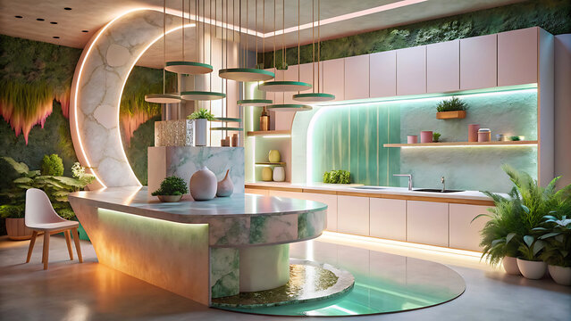 Neon signs, geometric shapes, vibrant colors, dark background, glowing, abstract, design elements.
