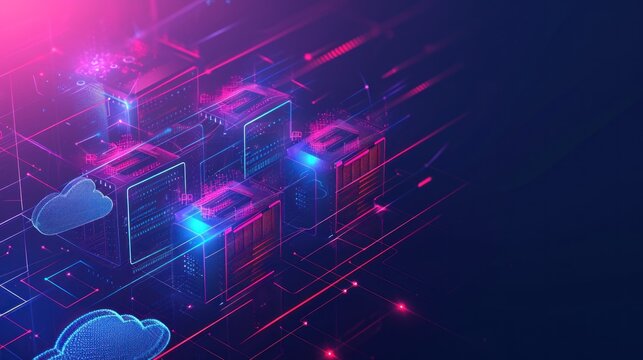 Digital data flow across high-tech server room