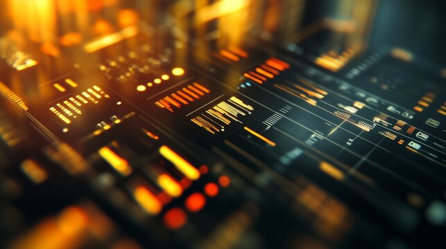Futuristic digital dashboard with circuitry and data visualization