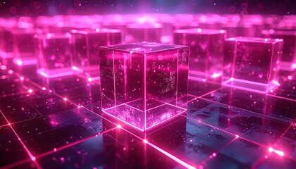 Futuristic image of glowing pink cubes connected by a network of illuminated lines
