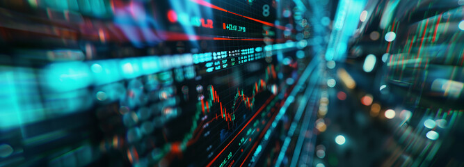 Vibrant data visualization of a futuristic digital landscape with glowing light bars on a grid, illustrating network flow and big data
