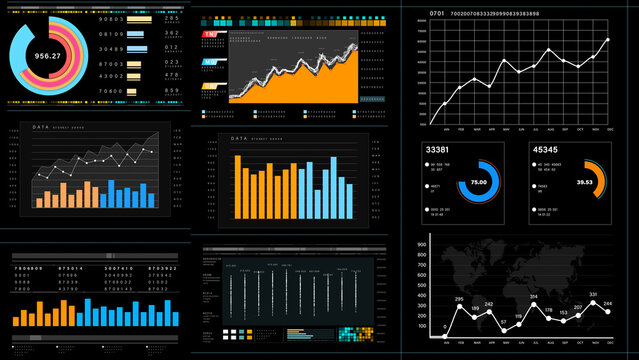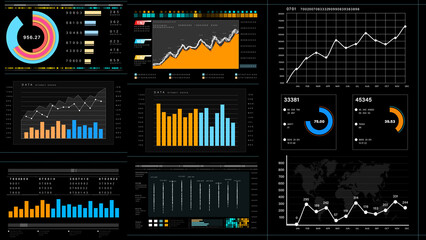 Business and financial investment, HUD infographic of financial, Information reports of business strategy for investment, Technology data analysis. 3d rendering