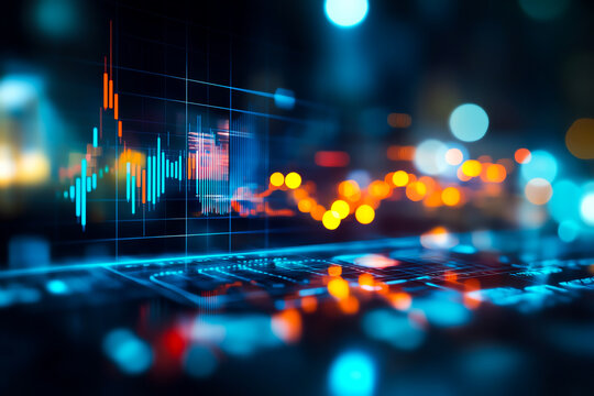 Futuristic Financial Data Analytics Interface With Bokeh Effect Images