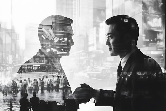 Businessmen Cityscape Double Exposure Deal