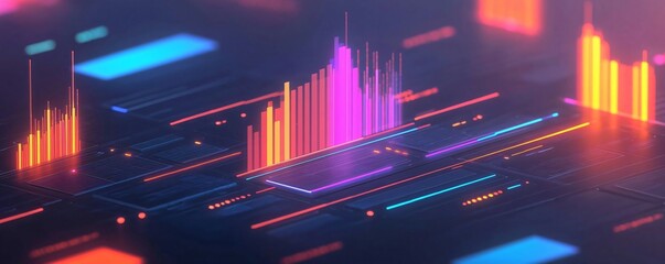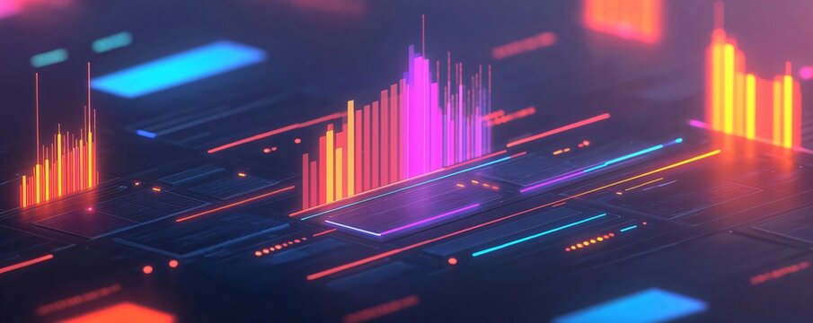 Vibrant abstract background featuring colorful data visualizations and digital elements for technology and innovation themes.