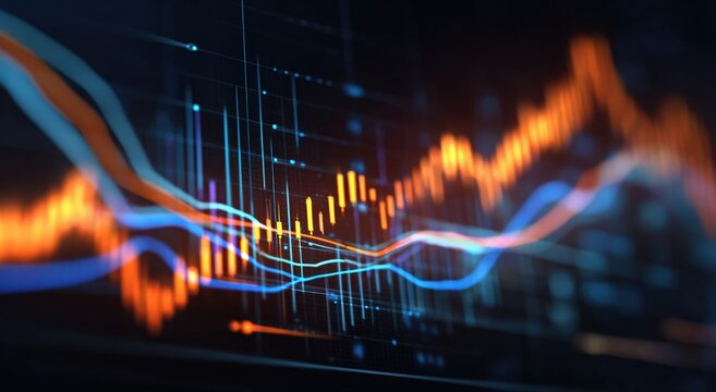 Dynamic financial graph with glowing elements symbolizing data analysis and market trends