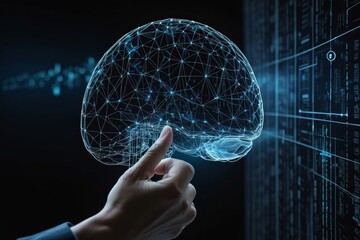 brain lit up by data patterns representing ai and technology