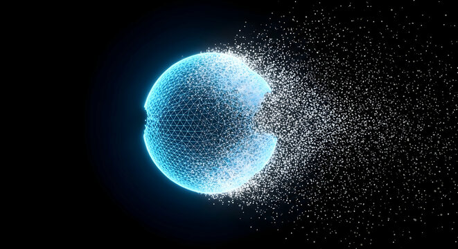 Futuristic Digital Mesh Globe Dissolving Into Pixels On A Dark Background