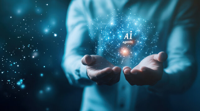 Futuristic digital interface displaying artificial intelligence and business analytics icons emerging from a laptop on a dark background representing technological advancement and data visualization