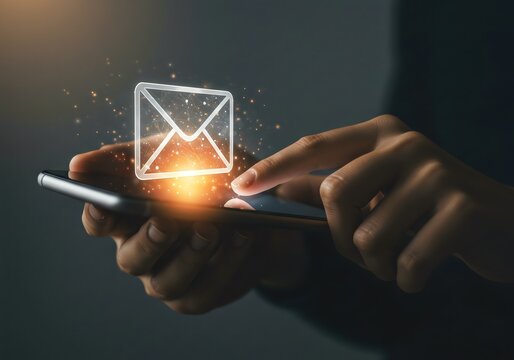 Dynamic digital network of connected email icons symbolizing global communication, data flow, and digital transformation in a vibrant, futuristic cyberspace.