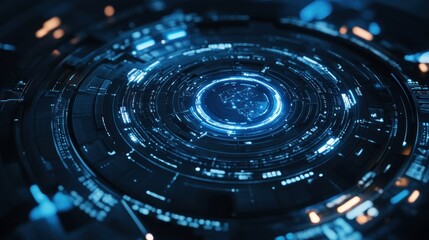 Abstract digital futuristic pattern with glowing circuit board elements and dark blue background for technology concepts