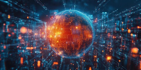 Blue Digital Globe Enclosed in a Futuristic Interface