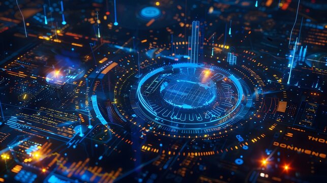 Futuristic Holographic Interface Displaying Data Visualization and Interactive Elements