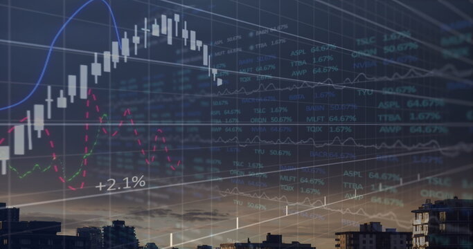 Futuristic Graph Over Cityscape Symbolizing Data Processing Images