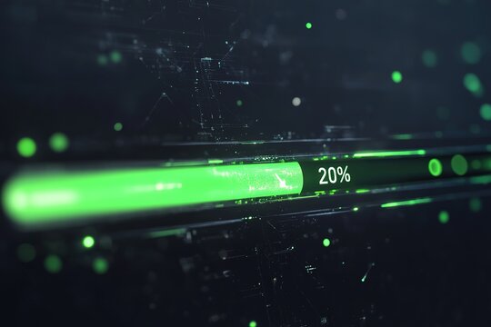 Glowing green progress bar with circular patterns against a dark green backdrop