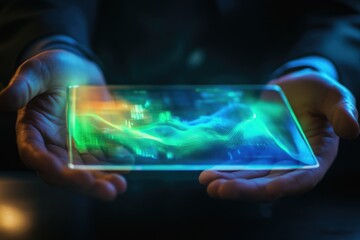 Futuristic Device Displays Colorful Abstract Waveforms