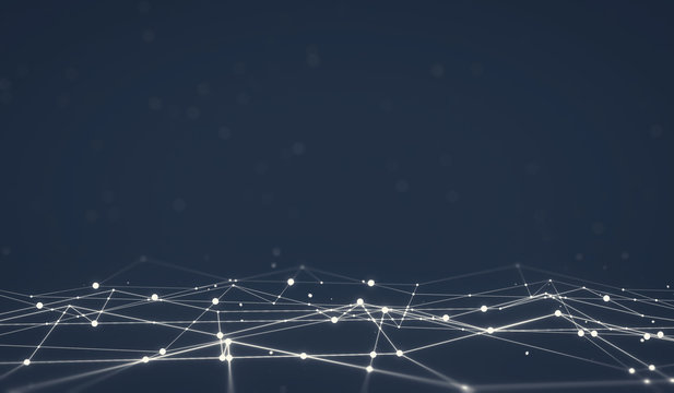 Pulsating neon nodes in digital space reflecting futuristic grid