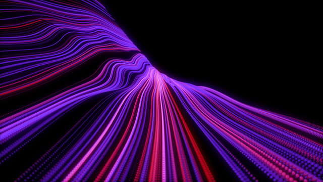 Colorful neon digital light trails with green dots