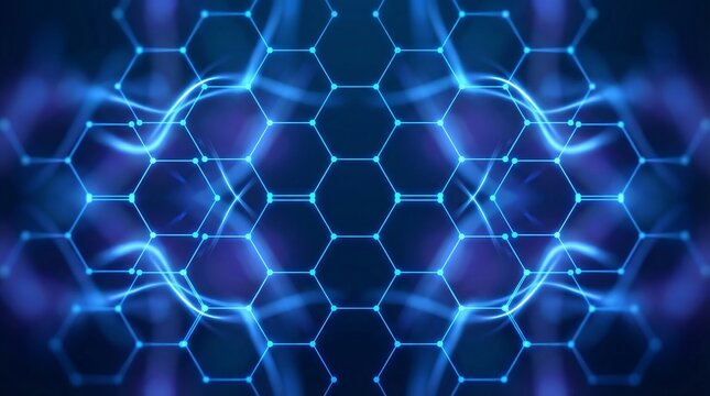Glowing hexagonal tiles in shades of blue form a futuristic and abstract background