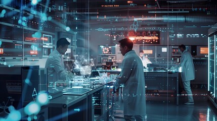 Futuristic laboratory utilizing artificial intelligence and big data to analyze the human body for medical research and innovation