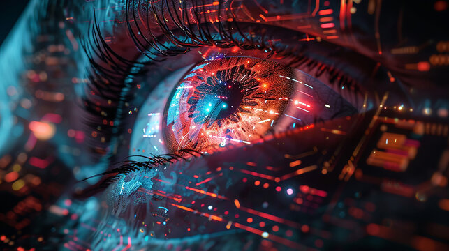 Futuristic holographic interface with digital overlays and neon effect