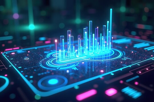 Sleek holographic AI interface displays data streams,  shapes,  technology background