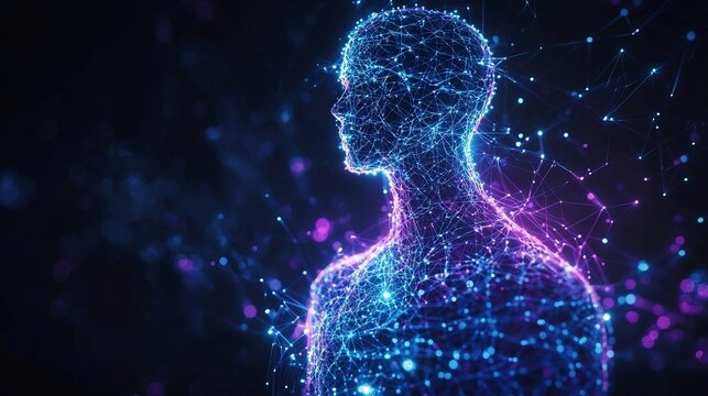 Futuristic digital human interface in data visualization