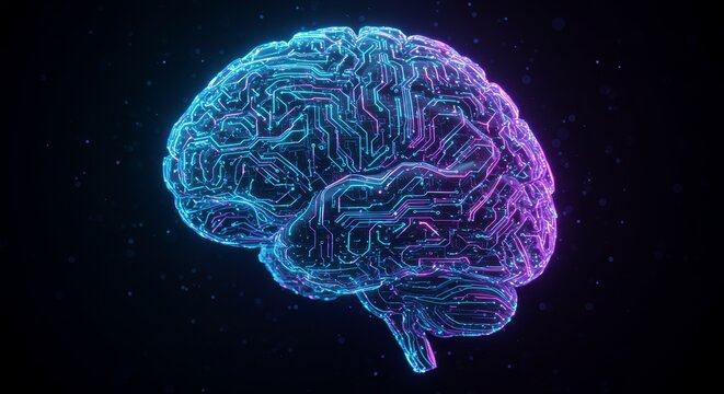 Futuristic human brain with glowing circuits, artificial intelligence exploration concept