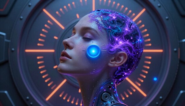 Futuristic human head circuit with tech elements