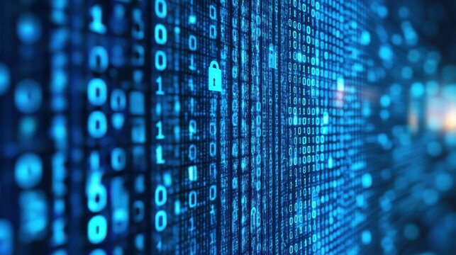 Cyber security interface with encrypted data focus on, futuristic, dynamic, Overlay, Server Room