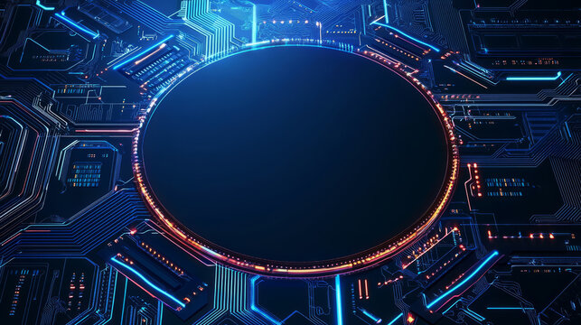 Abstract blue background with glowing circuit lines, digital connections, representing futuristic technology, data transmission, electronic systems, cyber network, innovation in high-tech environments